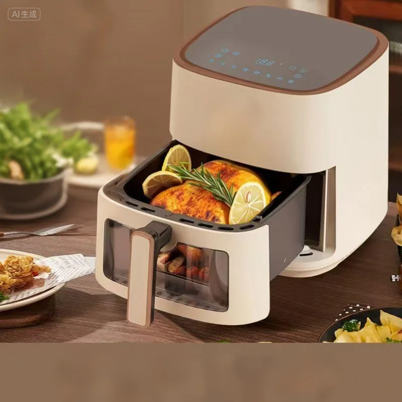With a generous [具体容量,如5.5L] capacity, this air fryer can prepare meals for 3-5 people at once. Ideal for cooking french fries, chicken wings, vegetables, and even baking small cakes.
